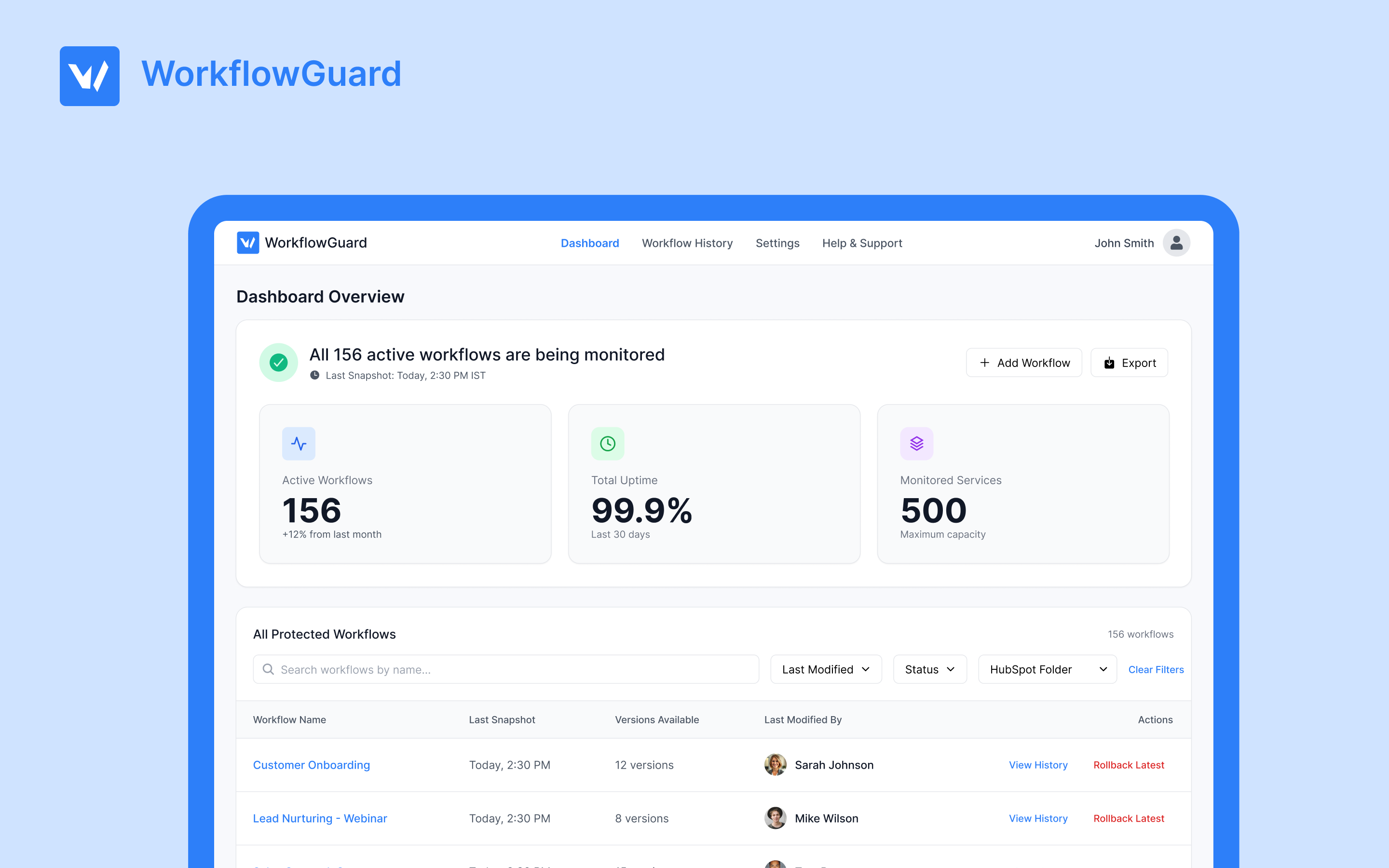 Seamlessly monitor, protect, and optimize your HubSpot workflow performance with real-time alerts, comprehensive analytics, and automated backup solutions.